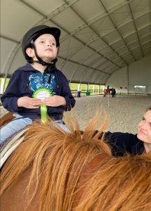 My name is Destiny and I love going to horse riding. I started when I was little (2 and a half]. My favourite horse is Saint and I love him. I like 4 point kneeling on Saint and riding backwards. Riding is so good for my balance and my hips. I didn’t used to be able to sit up straight when I started and now I can and I am also learning to walk. I can’t wait for every Monday so I can go to riding. I wish I could do it every day because horse riding is fun.” Destiny